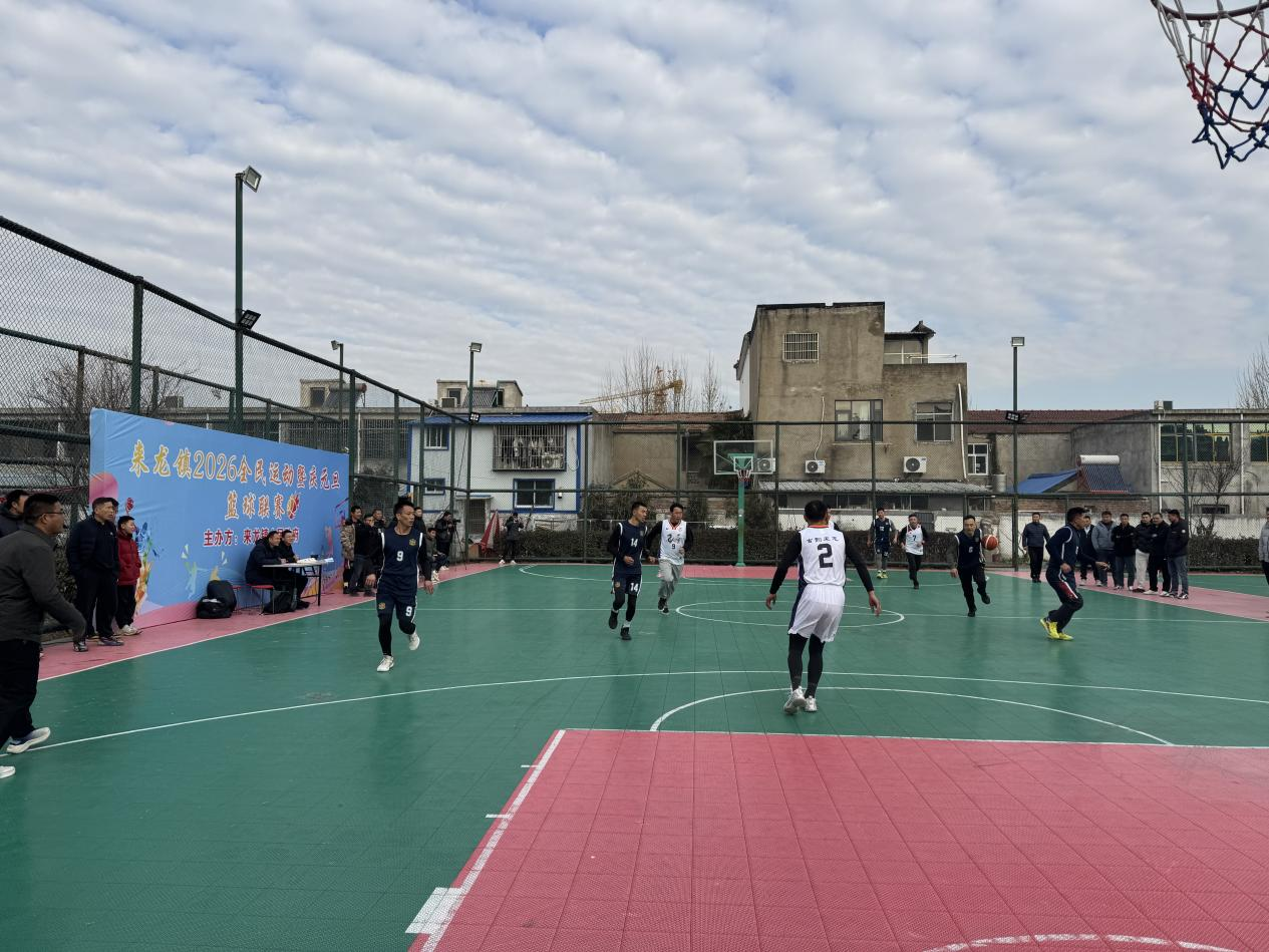 中国江苏网12月30日宿迁讯 寒风不挡激情,赛场见证同心。12月27日上午,宿迁市宿豫区来龙镇小镇客厅篮球场人声鼎沸,热力四溢,来龙镇2026年全民运动暨庆元旦篮球联赛正式拉开帷幕。这场以“搭建交流平台、推进全民健康、凝聚统战合力”为宗旨的体育赛事,吸引了全镇社会各界人士组成的8支队伍积极参与,大家以球为媒、以赛会友,在运动竞技中展现风采,在并肩拼搏中凝聚合力,为来龙镇高质量发展注入统战动力。