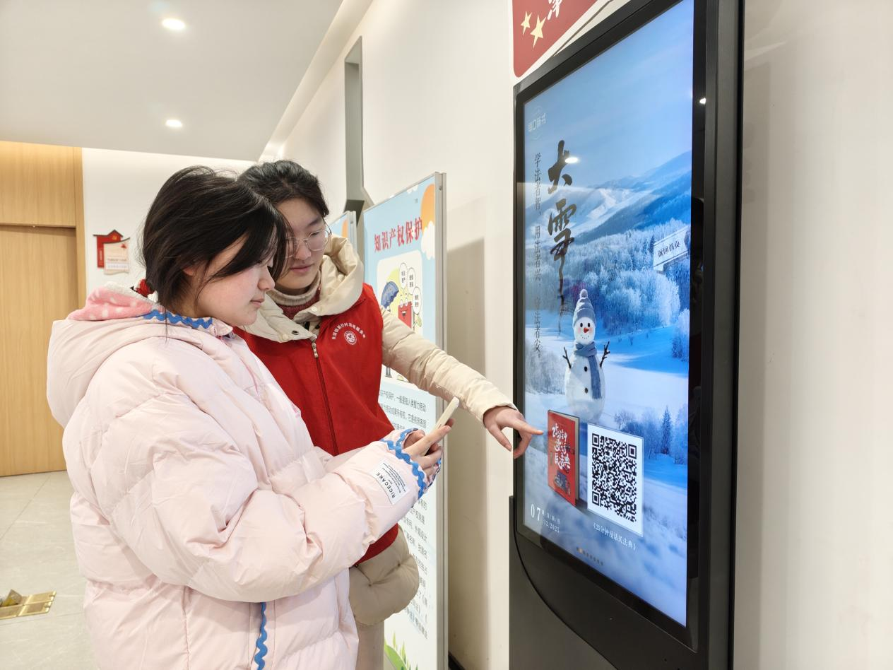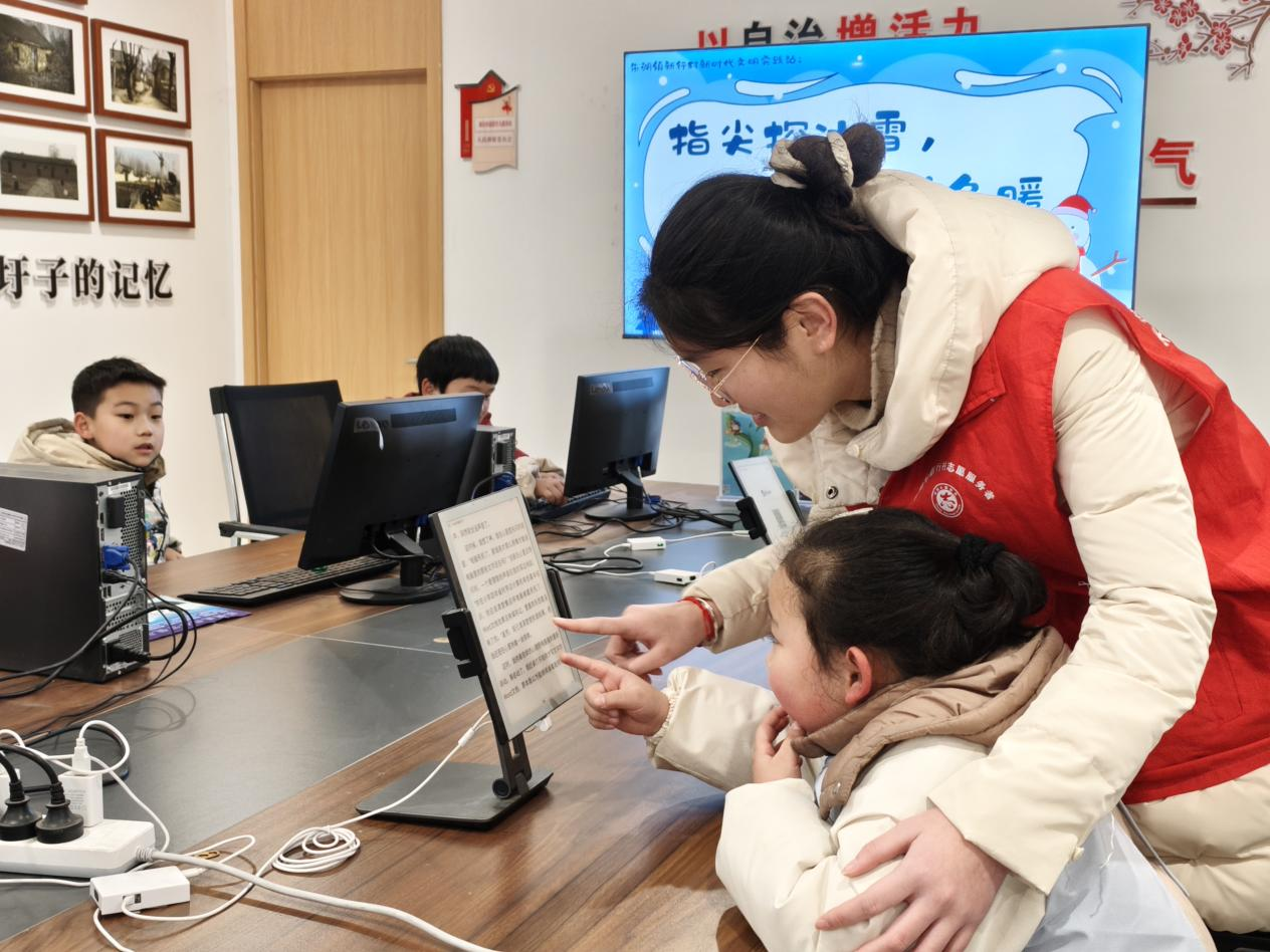 活动特别设置了“指尖探冰雪”电子阅读环节。志愿者们耐心指导小朋友们操作墨水屏阅读器,并且手把手教大家登录江苏省农家书屋公众号,引导他们如何在海量资源中检索和挑选心仪的图书。从《雪孩子》的温情故事到《南极探险记》的科普知识,孩子们不仅收获了知识,更体验到了电子阅读带来的便捷和乐趣。