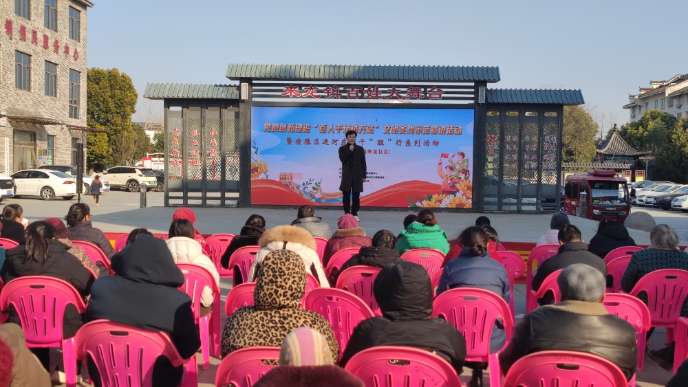 中国江苏网1月9日宿迁讯 1月9日,由宿豫区委宣传部主办的党的创新理论“百人千场进万站”文明实践示范宣讲活动暨宿豫区“运河东岸千‘理’行”系列活动走进来龙镇来龙社区新时代文明实践站,吸引百余名基层党员干部和市民群众到场参加,让党的创新理论直达基层末梢。