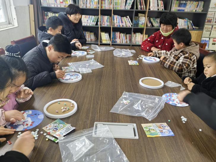 在志愿者细致地讲解步骤后,家长与孩子们纷纷动手创作大寒主题图画。裁剪、拼贴、布局……轻声讨论间,笑意洋溢;合作完成时,温情流动。一位家长感慨:“平时忙忙碌碌,很少这样静下心来陪孩子一起做一件事。今天不仅做了手工,更走进了孩子的世界。”