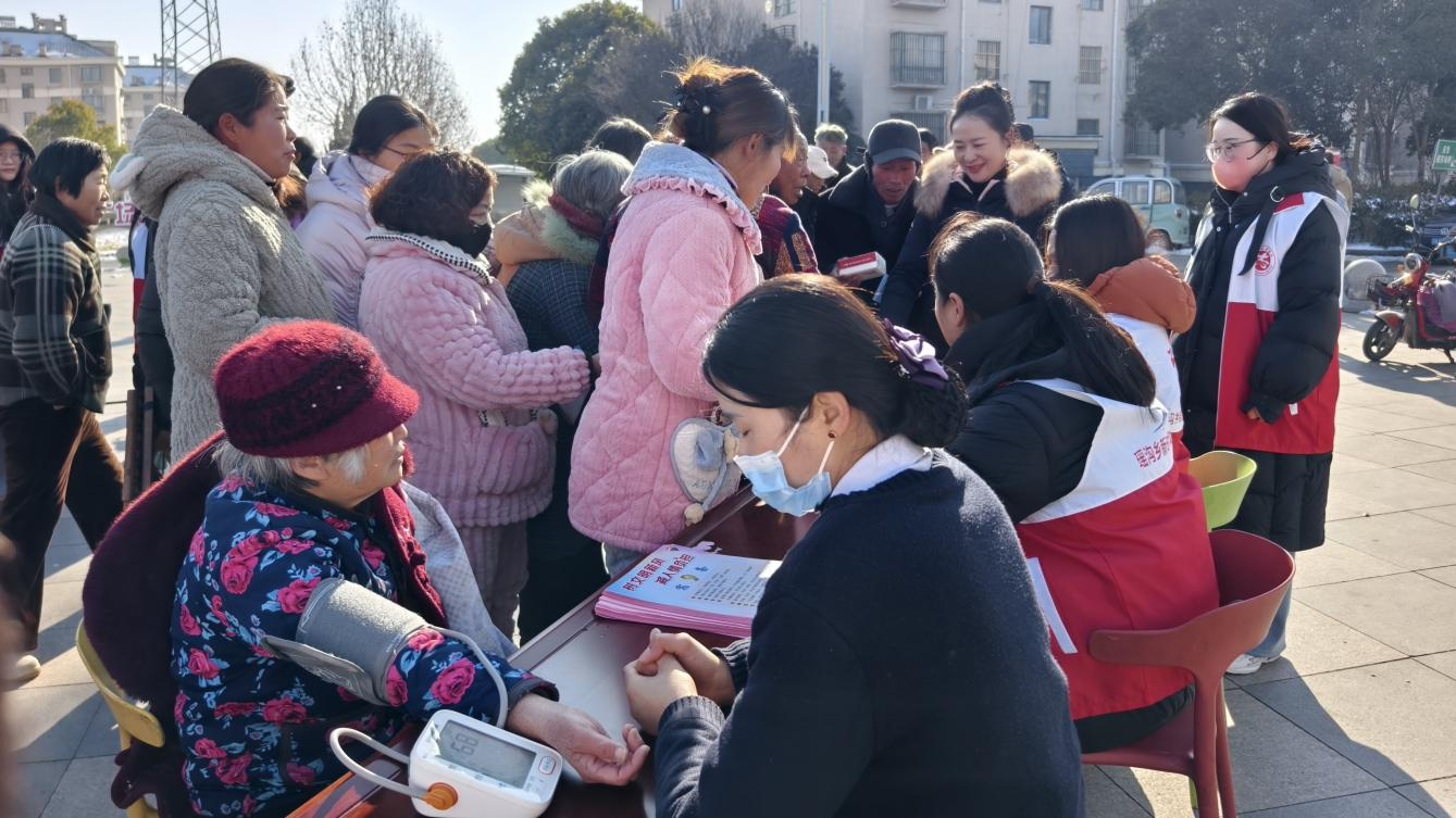 惠民礼包精准送,民意桥梁面对面。活动现场,退役军人服务站带领部分退役军人志愿者向群众宣传征兵政策。工作人员向村民发放《人情新风“宿9条”》与妇女维权关爱服务手册,用图文并茂的方式讲解庭院美化技巧与维权法律知识,助力居民打造宜居家园与法治乡村。“问题征集台”前,志愿者耐心记录村民关于基础设施改善、惠农政策落实等方面的疑问建议,建立“收集—反馈—办结”闭环机制,让群众诉求有处说、难题有人管。另一处,卫健中心的医护团队忙着为村民量血压,结合农村常见病开展健康科普,用通俗易懂的语言讲解慢性病防治、合理膳食等知识,将优质医疗服务送到群众“家门口”,切实打通服务群众的“最后一公里”。