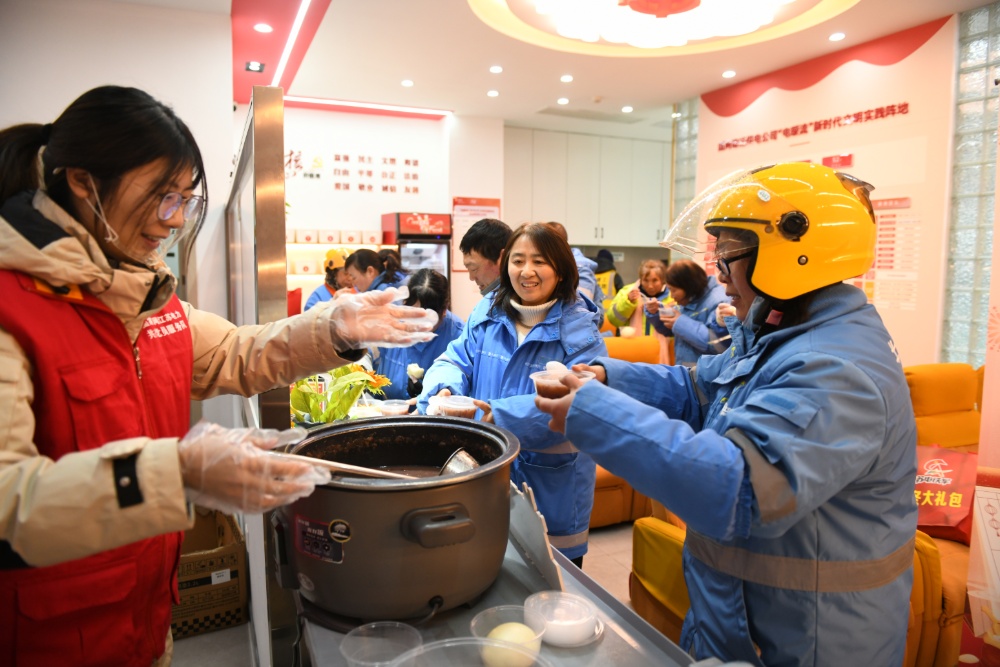 “环卫工人冒着严寒忙碌在街头,为整个城市的清洁贡献着自己的力量,能让他们像在自己家一样吃上舒心的腊八粥,我们也觉得高兴和欣慰。”公司青年志愿者服务队队员赵佳伟表示,无论是作为企业还是个人,关爱户外劳动者、传递社会温情,都是应尽的责任与义务。