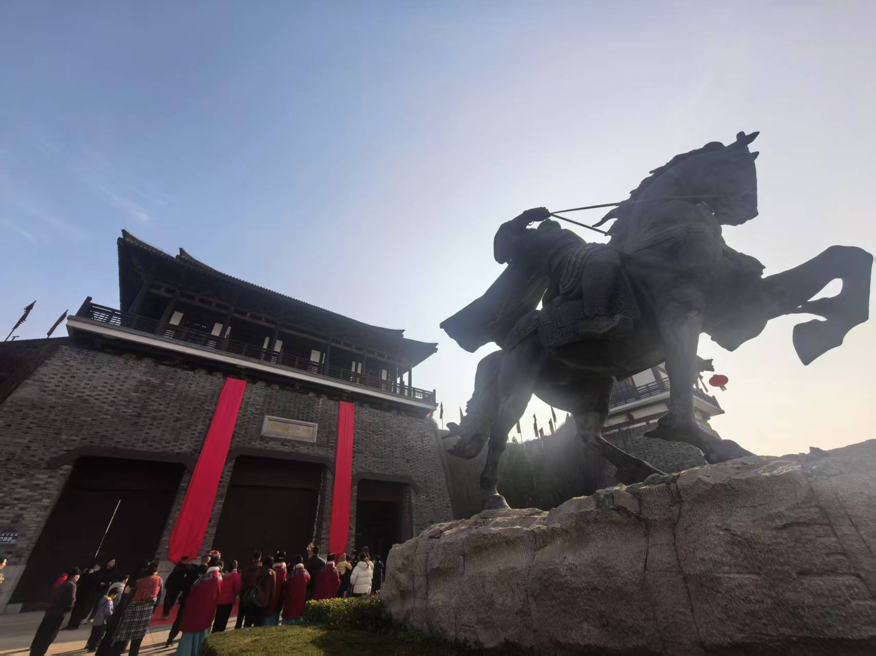赏完春联,项王故里的新春福利也如约而至。景区借着揭联的东风,推出“我是霸王我宠你”新春限定活动,春节期间,生肖属马或是姓氏为马的游客,凭有效证件就能免费入园,沉浸式感受楚韵风华,体验宿迁的新春年味。