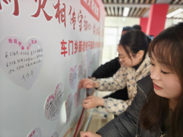 活动尾声,“薪火寄语墙”前,退休村干部写下“扎根基层、服务群众”“求真务实、久久为功”等寄语,年轻村干部写下“勇挑重担、不负韶华”“传承优良作风、建设和美乡村”等接棒承诺。大家将便签贴于寄语墙,让“老干退岗不褪色,青干接棒勇争先”的理念深入人心。