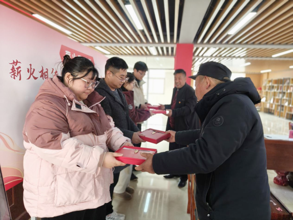 “师徒结对”环节中,退休村干部与年轻村干部结成师徒对子,现场签订《薪火传承师徒结对协议书》。师傅向徒弟赠送民情记录本与钢笔,以实用工具承载经验传承的期许,搭建起“传帮带”的坚实桥梁。