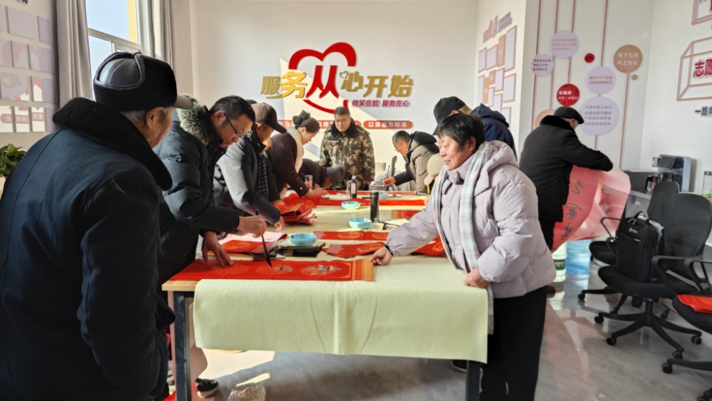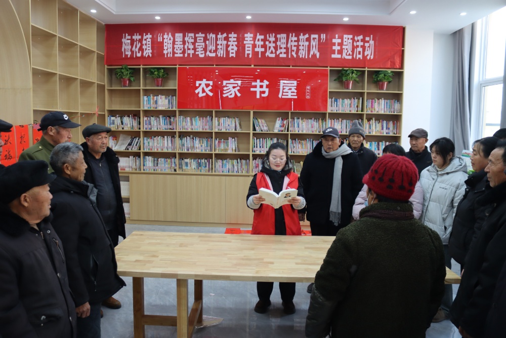 中国江苏网2月12日宿迁讯 新春将至,年味渐浓。为深入推进全民阅读,传承中华优秀传统文化,同时推动党的创新理论走进基层、贴近群众。2月11日,泗洪县梅花镇在从庄村农家书屋开展了“翰墨挥毫迎新春 青年送理传新风” 主题活动,让群众在浓浓年味中感受文化温度、汲取阅读力量,营造欢乐祥和、文明向上的节日氛围。