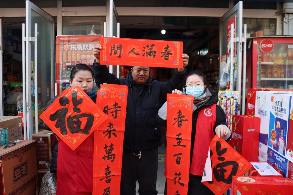 一纸春联寄温情,一份慰问暖人心。为让辖区困难群众、孤寡老人共享节日温情,志愿者们还开展了爱心慰问暖心行动,带着现场书写的春联福字和米、面、油等慰问品,分组深入村民家中走访慰问。与老人们促膝长谈,细细询问他们的身体状况和生活需求,用贴心的话语和实在的关怀,让特殊群体切实感受到党和政府的温暖与社会大家庭的关爱,让年味里多了一份浓浓的温情。