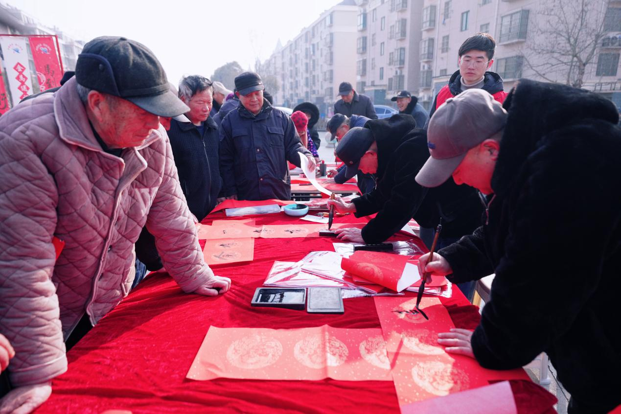 墨香飘,迎新春福韵进万家。书法爱好者现场挥毫泼墨,一笔一画饱含祝福,为村民免费书写春联与“福”字,一副副吉祥喜庆的春联刚落笔便被争相领取,传递着新春美好祝愿。剪纸艺术区里,红纸翻飞、剪刀灵动,生肖、福字、窗花等造型跃然纸上,将传统年俗文化展现得淋漓尽致,大人小孩纷纷体验创作,感受指尖上的年味。