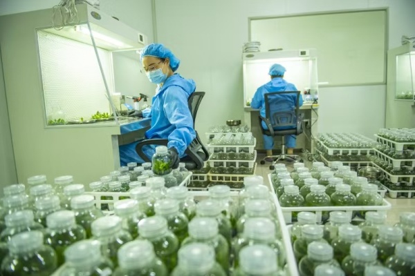 该项目引入市场化投资机制,形成“企业建设-集体入股-龙头运营”的立体化投入体系,整合社会资本与集体资源,夯实产业发展硬件基础。宿迁国沣农业科技有限公司发挥龙头引领作用,统一提供温室大棚、优质种苗、技术指导、标准化管理及市场销售渠道,带动300余名群众实现“家门口”就业,人均年收入3万余元。这个项目全部投入使用后,预计年生产各类组培苗6000余万株、种植苗2300余万株、产值2亿元,预计年接待观光游客3万人次。