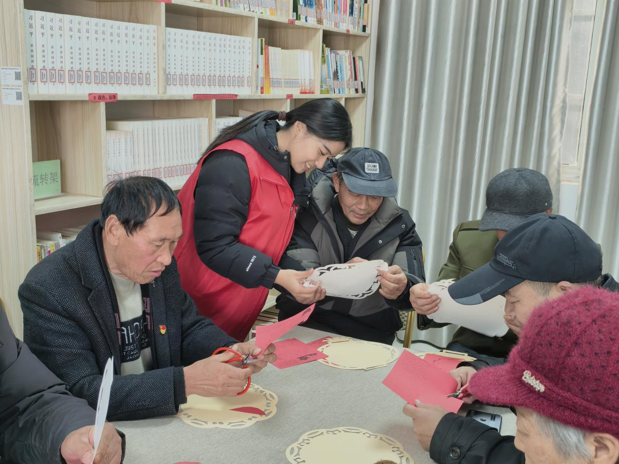中国江苏网2月24日宿迁讯 为推动中华民族传统节日与非遗技艺深度融合,让非遗技艺真正“活”在乡村、“融”入日常,近日,泗洪县朱湖镇马宅村在农家书屋组织开展“‘遗’脉相承·剪约新春”主题剪纸活动。