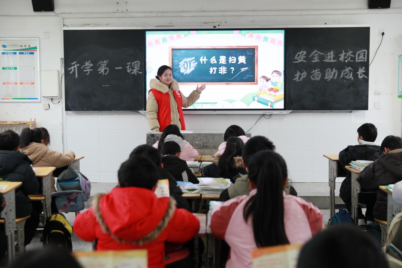 志愿者带领学生集中观看《向阳启航 “护苗”在行动》网络安全宣传视频,增强未成年人科学、文明、安全、合理使用网络的意识和能力。同时,志愿者利用PPT普及“扫黄打非”知识,发放宣传手册,开展知识问答,进一步强化学生们对“扫黄打非”的认识。