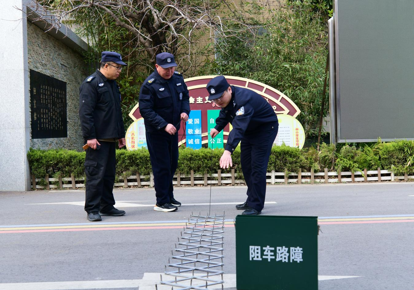 在实践中,驻校警官纷纷结合校情探索“一校一策”,联合“家、校、法、社”多方力量,助推机制落地见效。厦门路实验学校成立“启明”帮教小组,引导有不良行为的学生转变为校园安全“联络员”;宿迁技师学院联合公安巡特警部门开展实战化应急演练,提升校园应急处置水平;南师附中宿迁分校联动城管、公安交管等部门管制校园周边车辆违停行为,有效提升高峰期道路通行效率。
