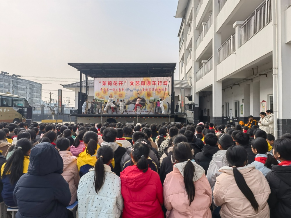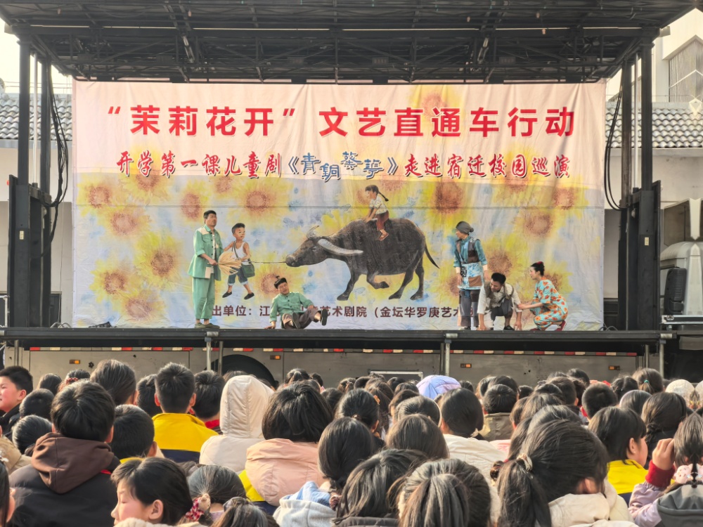 中国江苏网3月12日宿迁讯 3月6日下午,江苏省儿童艺术剧院“茉莉花开”文艺直通车行动载着经典儿童剧《青铜葵花》驶入泗洪县,为界集镇中心小学和魏营镇中心小学师生献上了一场直抵心灵的“文化课堂”。此次活动不仅将省级优质文化资源引入基层校园,更以生动的艺术形式为全县未成年人思想道德建设注入了新的活力。