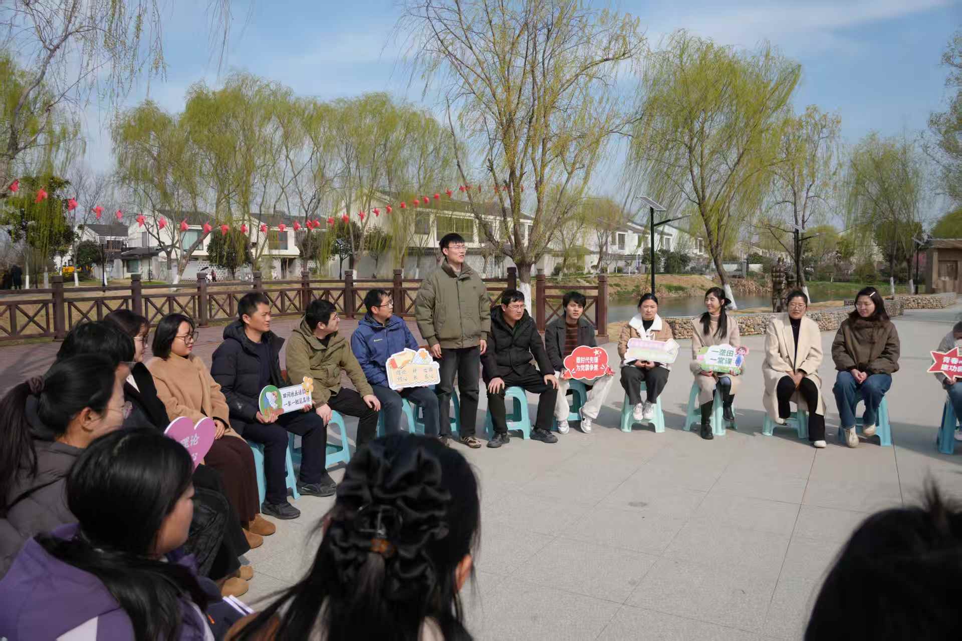 农事体验,实践促行。宣讲结束后,在志愿者的指导下,大家拿起农具,走进田间,亲身参与到喷除草剂、施肥等简单的农事劳作中去。春日暖阳下,一滴滴汗水滴落泥土,一次次弯腰劳作,让大家在劳作中切身体会“幸福都是奋斗出来的”深刻内涵,在实干中砥砺初心、锤炼作风,将理论认知转化为务实行动。