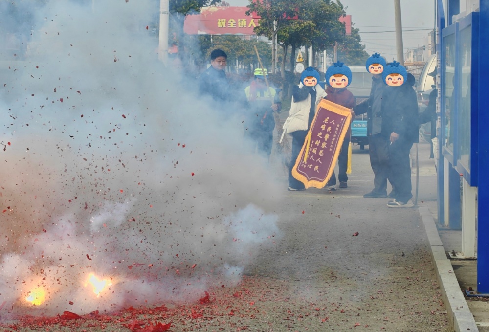 中国江苏网3月27日宿迁讯 3月21日上午,宿迁市公安局宿豫分局关庙派出所门前响起一阵喜庆的鞭炮声,引得过往群众纷纷驻足。家住关庙镇的陈先生携家人,将一面绣着“人民警察为人民 危难之时暖人心”的锦旗郑重交到民警手中,用最质朴的方式,致谢民警找回走失的老伴。