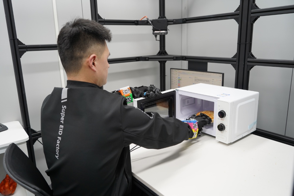 中国江苏网4月13日宿迁讯 4月8日,我们走进位于宿迁高新区京东机器人产业园的帕西尼具身智能全模态超级数据采集工厂,映入眼帘的是一幅极具未来感的画面:数百个标准化采集单元,工作人员佩戴着全球领先的PMEC数据采集手套,正在进行快递分拣、洗车维修甚至精密装配的“教学”数据采集。
