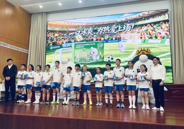 活动现场,趣味互动环节高潮迭起,宿迁小球迷代表成为全场最亮眼的主角。憨态可掬的苏嘟嘟、霸嘟嘟气模一经亮相,便瞬间俘获孩子们的心,小球迷们纷纷上前热情拥抱、打卡合影,欢声笑语回荡全场。主办方精心设置的联名款中农科富硒绿豆冰糕甜品台,让孩子们在感受足球魅力的同时,品尝到本土美食的清甜;主持人现场发起的有关“苏超”赛事互动提问,小球迷们踊跃举手、积极作答,尽显对足球运动的赤诚热爱。