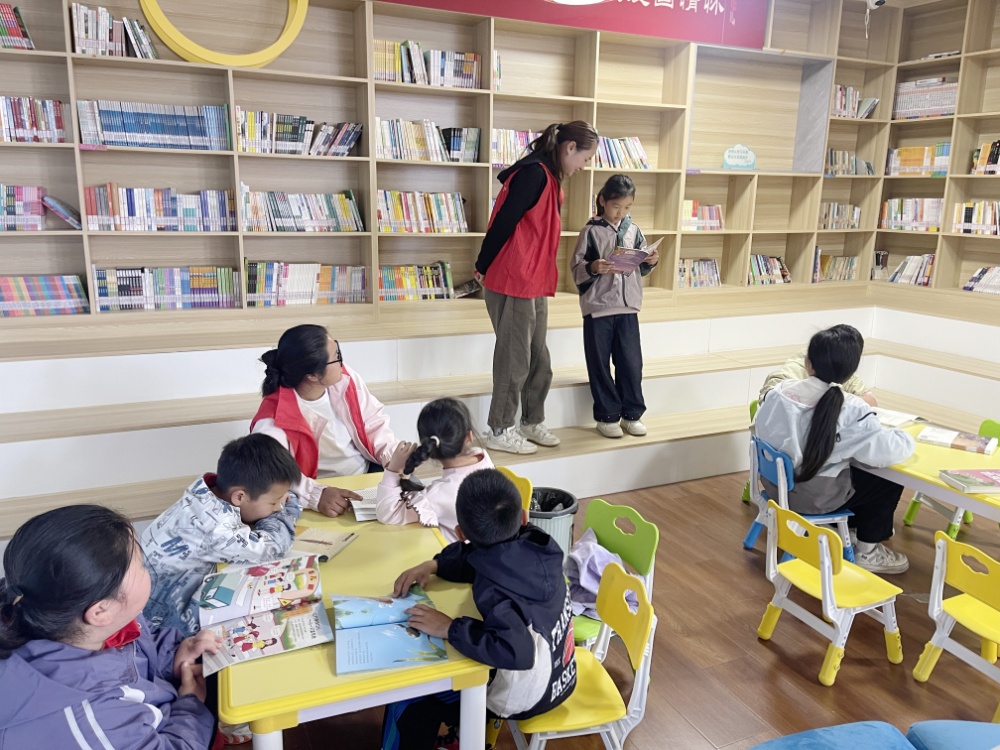 活动现场暖意融融,农家书屋的书架前、书桌旁,孩子们的身影格外亮眼。志愿者们早已提前备好经典绘本与优质儿童故事书,用活泼生动的语调带领孩子们开启共读之旅。从充满奇幻色彩的童话王国到蕴含生活智慧的寓言故事,志愿者们时而模仿角色对话,时而提出趣味问题,引导孩子们沉浸式感受故事情节的跌宕起伏,体会文字背后的温暖与力量。孩子们围坐成圈,脸上满是专注与好奇,听得津津有味,时不时与志愿者互动交流,清脆的笑声在书屋中久久回荡,充分展现了孩子们对阅读的浓厚兴趣。