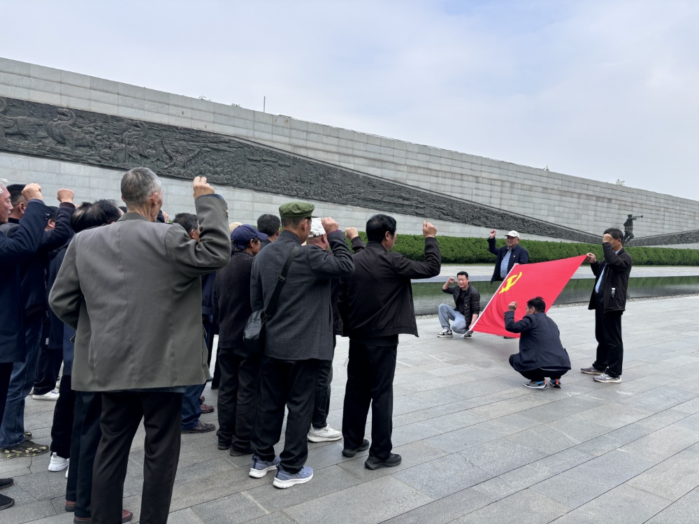 在纪念馆门前广场的党旗前,全体党员高举右拳,庄严重温入党誓词。铿锵誓言回荡现场,既是对历史的深刻铭记,也是对初心使命的郑重承诺,进一步坚定党员干部的政治信念。