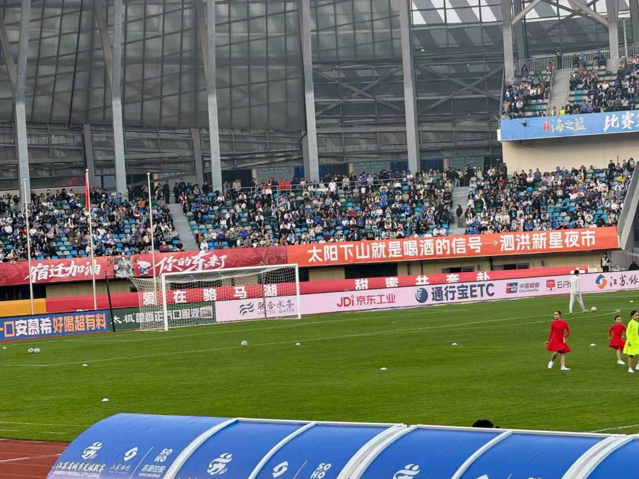 “赛前只知道赛场会放我们的横幅,但完全没想到能和京东并肩亮相,真的非常感谢主办方,让我们这样普通的夜市,能有机会和京东在同一个看台上。”岳一争表示,新星夜市不仅是一个夜市,更像是众多宿迁小微企业的“代名词”,希望借助“苏超”这一平台,让更多普通商户被看见、被关注,同时把宿迁独有的烟火气传递给更多人。