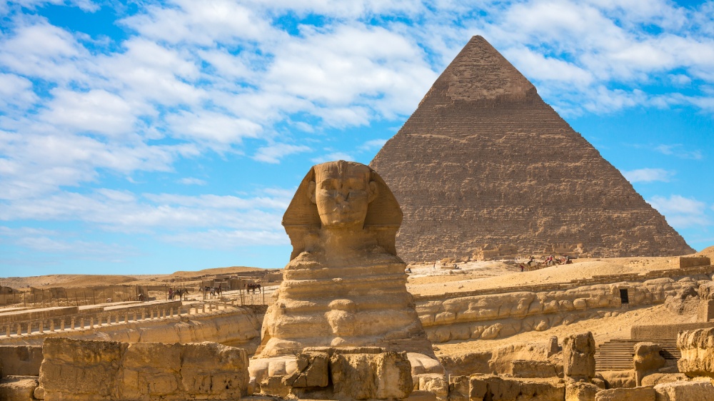 我们一行二十一人在机场外等候客车,一位裹着雪白长袍的埃及男人迎面走来,他的肚腩将金线刺绣的长袍撑出柔和的弧度。他挥着导游旗,未开口先露出新月般的白牙:“欢迎来到金字塔的故乡开罗,我是你们的地陪刘德华!”
