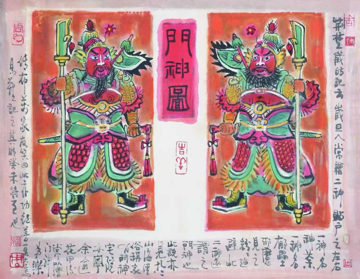 即使不买,乡亲们也喜欢看现场的书法“表演”,精彩处会喝一声彩,因此更显热闹。春联一般分两种,四字和七字,两毛钱一副,送横批和几幅大小不一的“福”。两毛钱不算贵,在数九寒天的露天写字,是很辛苦的。老青口临街的院子大门都贴四个大字联,如“一元复始,万象更新”“平安是福,和乐为春”。院内的屋门都是七字联,如“向阳门第逢春早,劳动人家庆有余”“春回大地千峰秀,日暖神州万木荣”。门沿上要贴横批,俗称“门条子”,如“欢度春节”“福气临门”。迎门的墙上、水缸上及小门上都会贴满“福”字,或“日进斗金”“招财进宝”。火红的春联烘托出满城的春色。