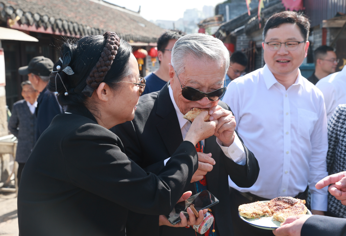 博士所写不虚,我的眼前又浮漾出一张旧照中的光景:东大街迎春桥头,蒋老师托着半片如皋烧饼,送入博士的口中。阳光明媚,像一面透明的镜子,映亮了李博士每一根银丝。彼时的李博士,身心安康,跃然光中。