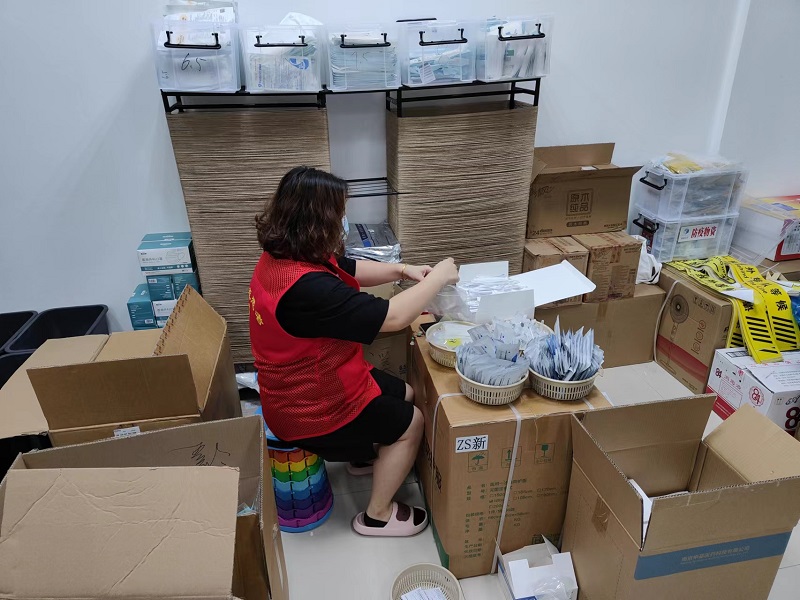 相比陈伟俊的早起,担任蠡溪社区防疫工作物资组组长的陈玲则需要晚睡。既是网格员又是物资组组长的她,时常需要核查数据到深夜,并且只有将第二天全员核酸检测的所有物资做好出库、分类记录等工作安排妥当后,她才安心回家,往往离开社区的时间已至凌晨。