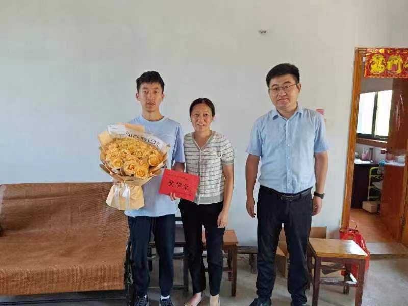 农家无闲月,八月人倍忙。8月12日上午,阜宁县新沟镇新西村三组葛宇豪家里挤满了人,热闹非凡。新沟镇党委书记张勇、镇长朱荣大走访慰问新沟籍考入清华大学学子葛宇豪。张勇向他及其家人表示镇党委、政府的美好祝福和殷切期望,鼓励他进入清华学府后,要走好新的赶考之路,勤奋学习,做有理想、敢担当、能吃苦、肯奋斗的新时代有志青年。镇长朱荣大代表镇党委政府向葛宇豪递上一万元慰问金,党委宣传委员王义送上鲜花表示祝贺。据悉,葛宇豪是今年全县考入清华大学的唯一一人。