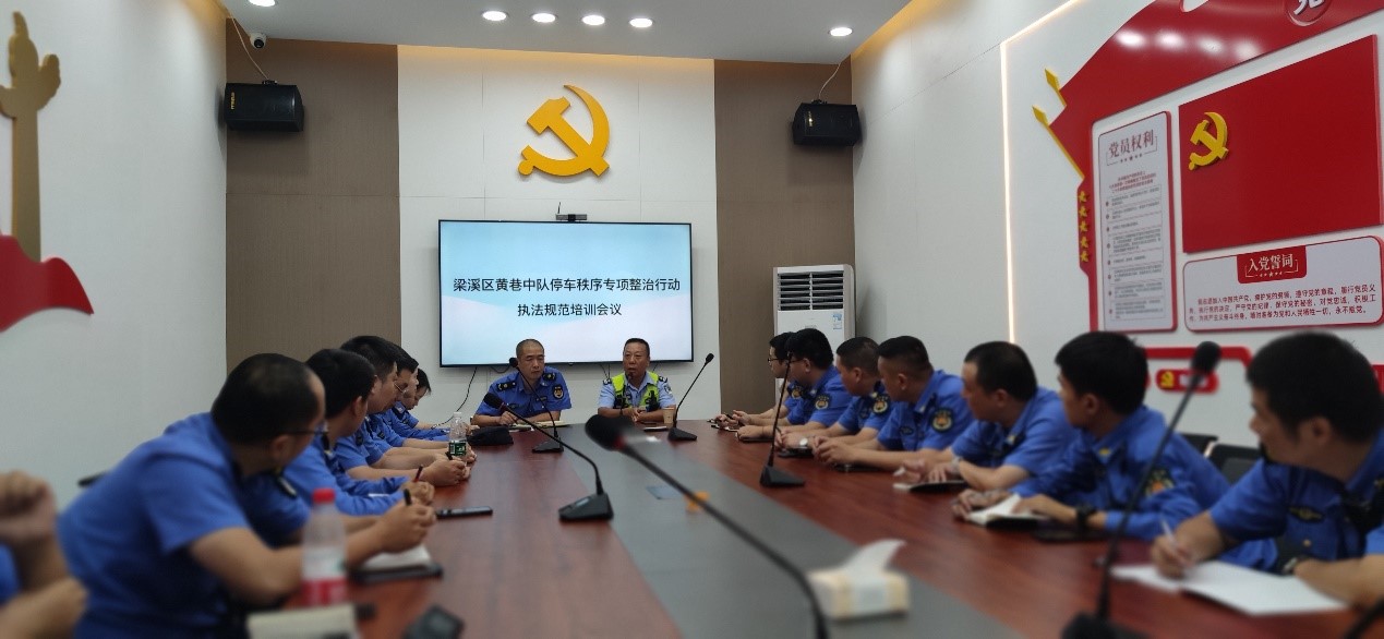 8月28日,梁溪城管黄巷中队特别邀请到梁溪交警大队八中队王春翔指导员,到中队开展执法规范的专项培训,针对城警联动中违停拖车、违停查拍的现场执法流程规范以及处置应对技巧进行详细讲解,结合日常案例通过现场示范指导的方式给中队队员们上了一堂有声有色的执法规范培训课。