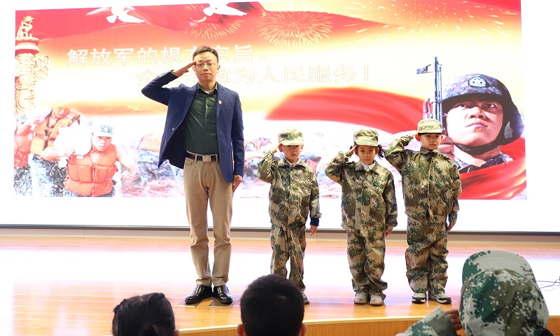 杨汪龙还现场教起孩子们如何站军姿、敬军礼,一个个别提多神气了。