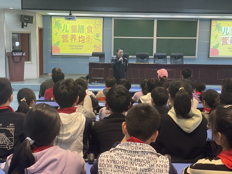 为普及膳食营养知识,提高青少年群体的健康意识,4月11日,无锡扬名街道与市监扬名二分局联合举办食品安全进校园活动,邀请江南大学志愿者走进南湖小学开展主题为“儿童膳食 营养均衡”的营养科普讲座。本次讲座旨在让青少年形成对健康的新认识,增强学生合理膳食、均衡营养观念,养成健康饮食的习惯。