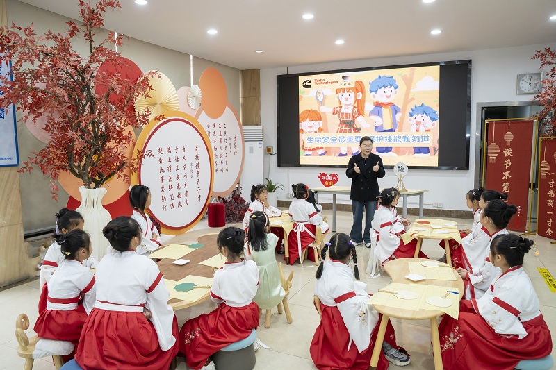“双手慢慢前举,右手在左手前,缓缓弯腰行礼……”身着汉服,头戴发簪,一个个翩翩汉服少女在樱花绚烂之际走进蠡园街道未成年人保护工作站女童保护课堂,在传统文化中体会中国女性的坚韧、勇敢与智慧;在花的世界中,提高未成年人自我保护意识,让爱更有力量。
