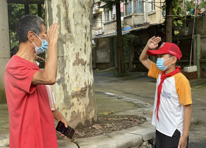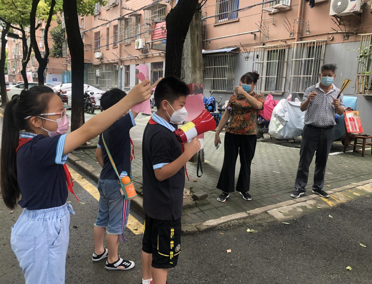 “爷爷奶奶,叔叔阿姨,为了你我安全健康,请您戴口罩、勤洗手、少出门、不聚集”这是吉祥庵社区“红领巾”防疫宣传队员的稚嫩清亮的宣传语。每天早晨和傍晚,我们的红领巾”防疫宣传队员们都会举着队旗,拿着喇叭,在新联二村小区来回巡视,向居民们宣传防疫知识,劝导大家“非必要,不出门”。一个个佩戴着红领巾的身影,充满了阳光和活力,就如同歌曲里所唱“爱祖国,爱人民,鲜艳的红领巾飘扬在胸膛”,“红领巾”防疫宣传队的“小小志愿者”们坚定地走在小区里,发挥着自己青春的力量。