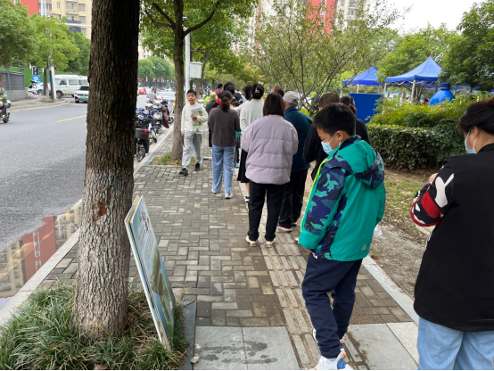 “时刻保持安全距离,参观文物图片不无聊,大家可以看看展板,大多都是栖霞区的一些文物”。居民们佩戴好口罩,在志愿者的引导下保持着安全距离,有序待检。队伍旁放着文物图片展板,居民们可以通过欣赏、讨论、研究文物,对栖霞区更好的了解。