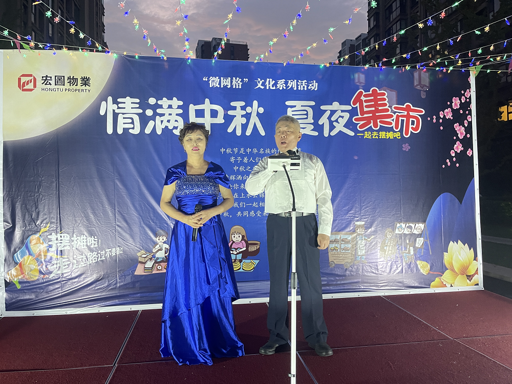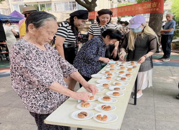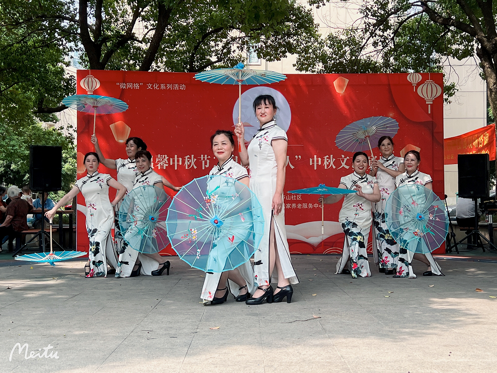 老年文艺:兴宏园围绕“温馨中秋节,温暖一家人”的主题开展了一系列娱乐歌舞活动,与居民们欢聚一堂。活动结束后,社区网格员们邀请几位九十岁高龄的老人现场为大家分月饼、祝愿大家幸福长寿,愿所有老人共享此刻的快乐。