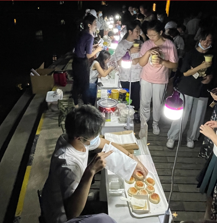 夏夜集市:夜幕降临,中秋的圆月已高悬在天边。宏图小区举办的“情满中秋,夏夜集市”中秋义卖活动也正式拉开了帷幕。此次活动由居民自行选择想要义卖的物品放在集市上进行售卖,在今天的义卖活动现场,气氛热烈,各个爱心摊位都“生意兴隆”。“卖家”都在积极呼吁,“买家”都愿慷慨解囊,“成交”总是开心有爱。在现场,参加义卖活动的居民表示:“爱心义卖是社会爱心的一种体现,可以帮助到更多需要帮助的人!”