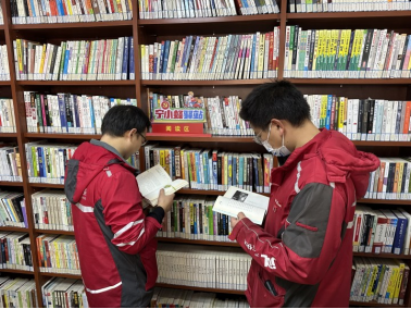 快递小哥在宁小蜂驿站的阅读区尽情徜徉在书籍的海洋中,并在阳光的沐浴下享受午后时光,小哥们说:“只能闲片刻,马上双十一很忙,下午又要投入到工作中去了。”