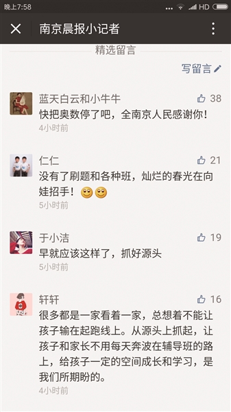 “南京晨报小记者”官微 部分网友评论摘录