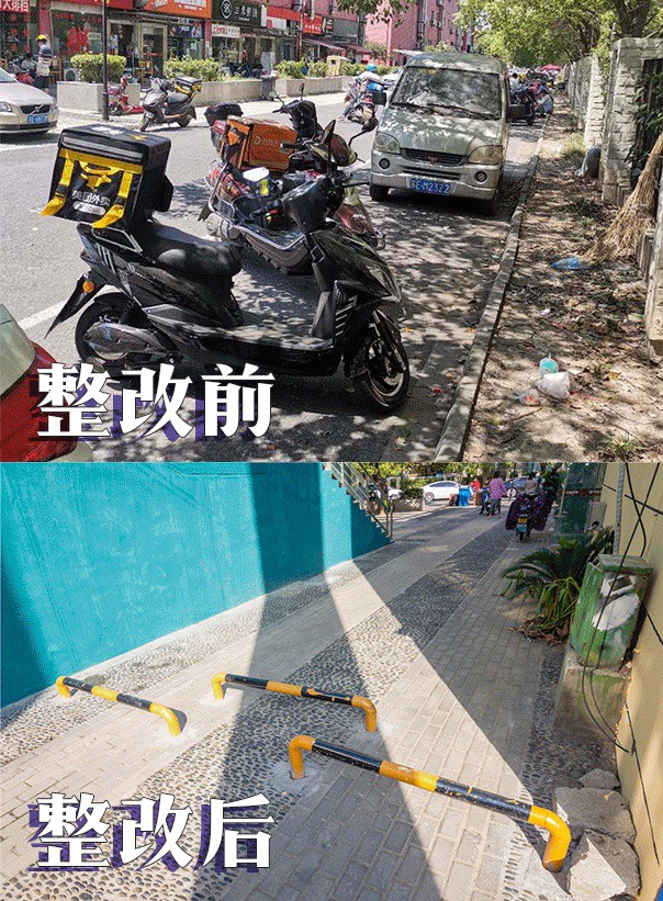 针对商业街餐饮店油污管道乱排放、外卖店门口及停车场乱停或违停电瓶车、分类垃圾桶不统一、外卖员任意进出等问题造成的环境脏乱差、交通拥堵状况,湖畔天城商业街治理工作小组迎难而上,力求破解之道。指导引导商家将污水排至污水井并清洗外墙油污、停车场安装铁质矮围栏、撤换不合规垃圾桶、进出口加装阻围栏,重拳出击下,湖畔天城商业街的脏乱差现象得到较大改观,恢复了舒适宜人的街区形象。