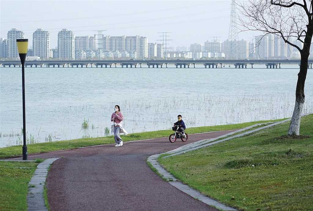 近年来,苏州生态环境越来越好,家门口的“绿水青山”成为市民周末休闲的好去处。图为昨天市民在东太湖边跑步、骑车,乐享滨水生活。记者 杨海石 摄