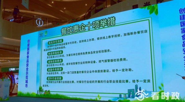 今年是苏州市创建国家食品安全示范城市的启动年。活动中,市市场监管局和市商务局共同发布了包含优化许可流程、减免检验费用、包容审慎监管等10条惠企政策。由市场监管局打造的食品安全综合治理平台“苏食安”正式上线。启动仪式上,还开展了“苏小检在行动”连线检查现场,为食品经营安全高质量发展建设单位、省级“名特优”食品小作坊获奖企业授牌等活动。