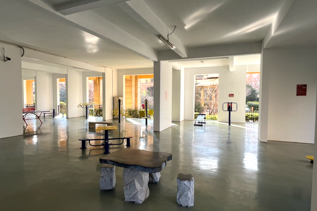 在延祥社区居民议事会上,居民反映小区公共休闲空间不足,老人小孩缺乏休憩场地,同时也对小区架空层电瓶车停放混乱、存在安全隐患表示担忧。社区立即实地查访:“能不能在闲置的架空层上做点‘文章’,既解决电瓶车乱停放,又能辟一块活动场地?”由于架空层为公共空间,属于全体小区业主所有,要改造还得大家说了算。于是在广泛听取居民意见的基础上,经居民代表大会表决,“乐享客厅”启动建设,并于2023年末建成。