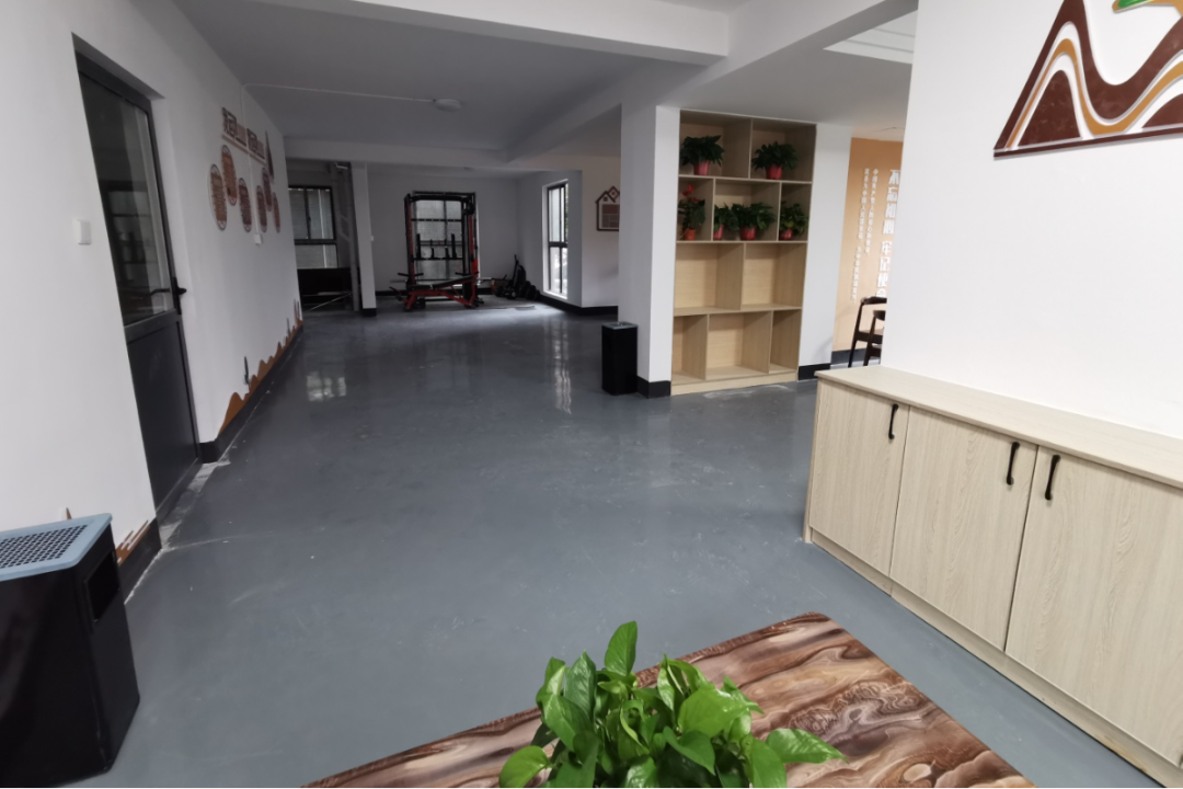 徐公桥花园是一个动迁小区,老年人多,活动场所少。有的老人就自发在2号楼1单元的架空层里挂上窗帘、放置桌椅,当作休息聊天之处。但是这么一来,窗帘容易引发火灾,而且冬天的时候架空层气温低,寒气重。观澜社区站在群众角度思考,对该架空层进行改造升级,通过美化地面墙面、安装窗户、增设桌椅和绿化等改造,使得架空层变成了一间布置雅致的居民活动室,为居民提供了一个遮风避雨的休闲好去处。