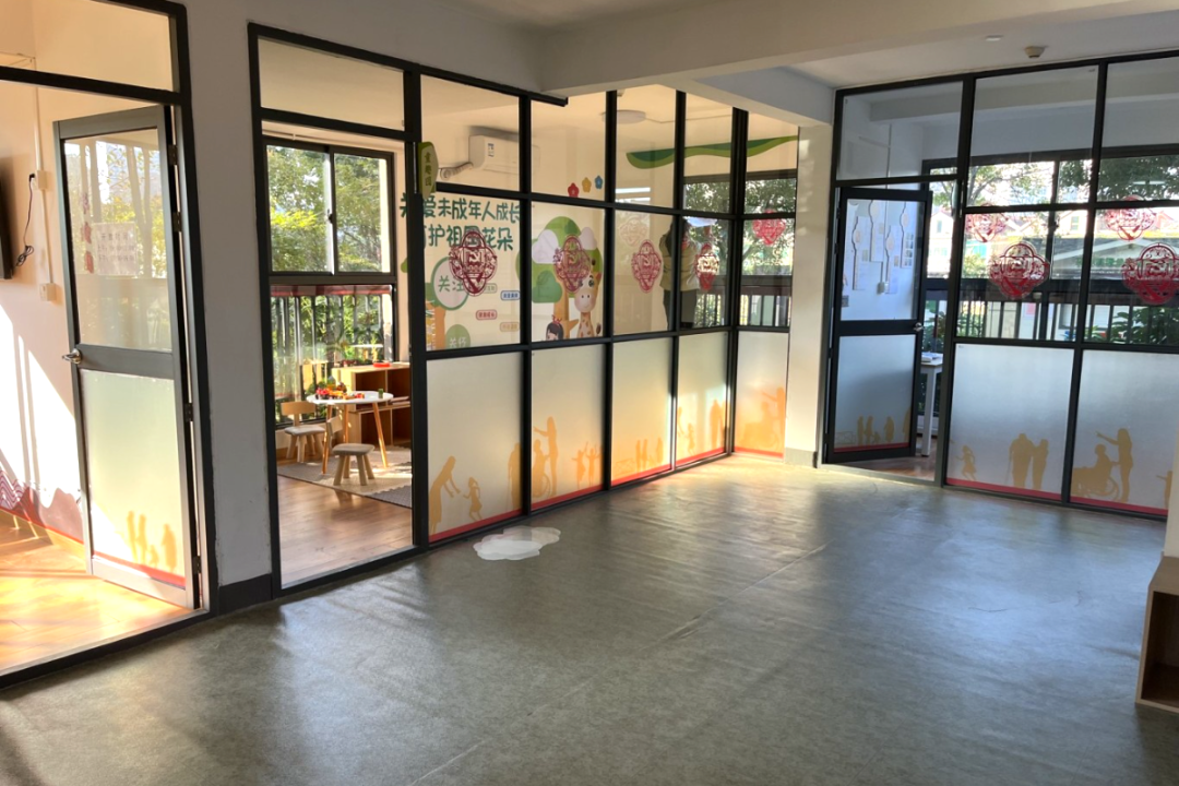 “张阿婆,吃好中饭,带上孙子一起去‘暖阳之家’,今天有手工活动哟。”无独有偶,新安社区也将闲置的架空层改造利用起来,建成“暖阳之家”,庞家浜新村的老人和孩子们有了一个好去处。位于小区4号楼西侧的“暖阳之家”设置了“银龄角”“童趣园”“志愿岗”3个功能室,在这里,老人可以看看电视节目,或是安静地聆听健康讲座,又或是三五成群,惬意地拉着家常,分享着生活里的琐碎与温暖;孩子在这里有专属的活动区域,看书、游戏,趣味性十足。