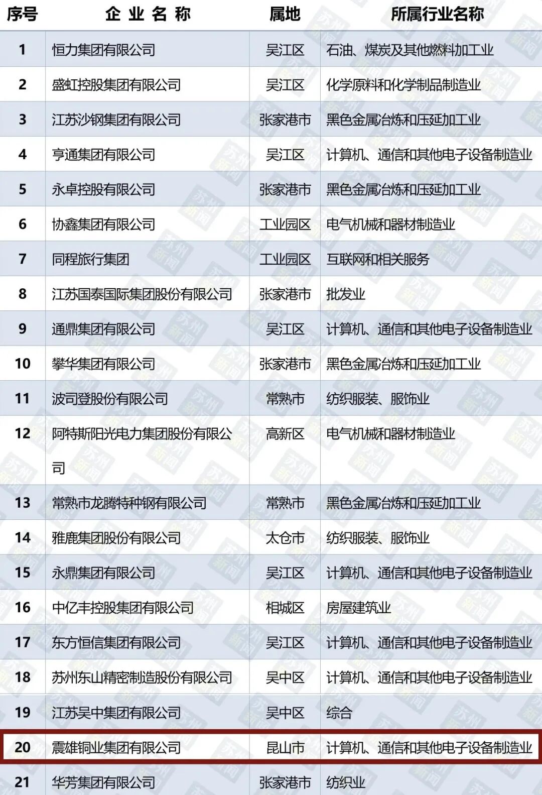 花桥民营企业——震雄铜业集团有限公司和昆山京东广臻贸易有限公司上榜,分别位列第20位和65位,其中震雄排名较上年攀升1位。同时,“2025苏州民营企业研发投入100家”名单首次发布,震雄铜业集团有限公司再次上榜。