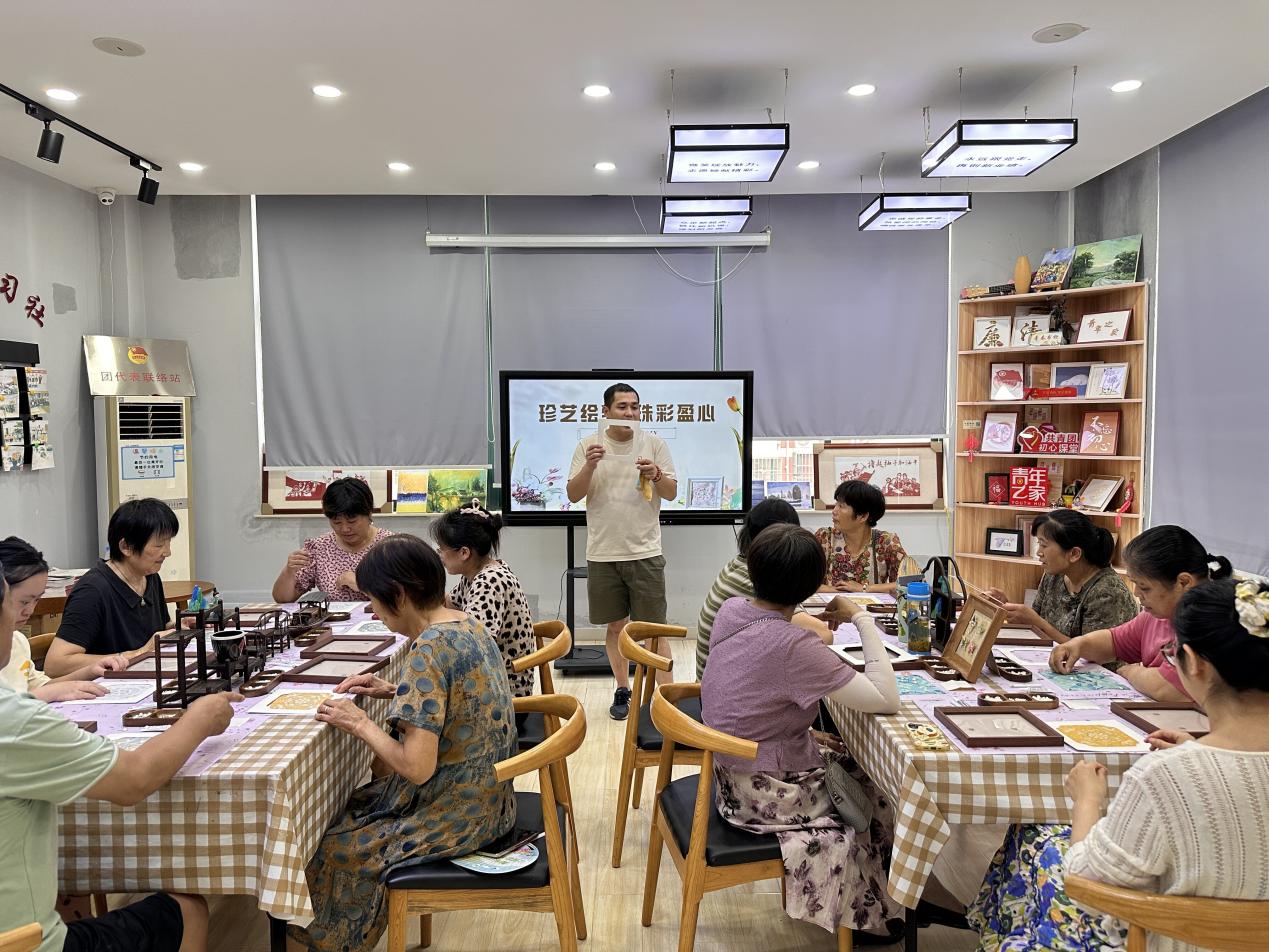 此次非遗科普活动不仅为社区居民提供了一个学习传统技艺、放松身心的平台,更增强了社区凝聚力,提升了居民的文化获得感与幸福感。这些由居民亲手制作的宋锦珍珠画,不仅是装饰家居的艺术品,更是承载着社区温情与文化传承的宝贵印记。