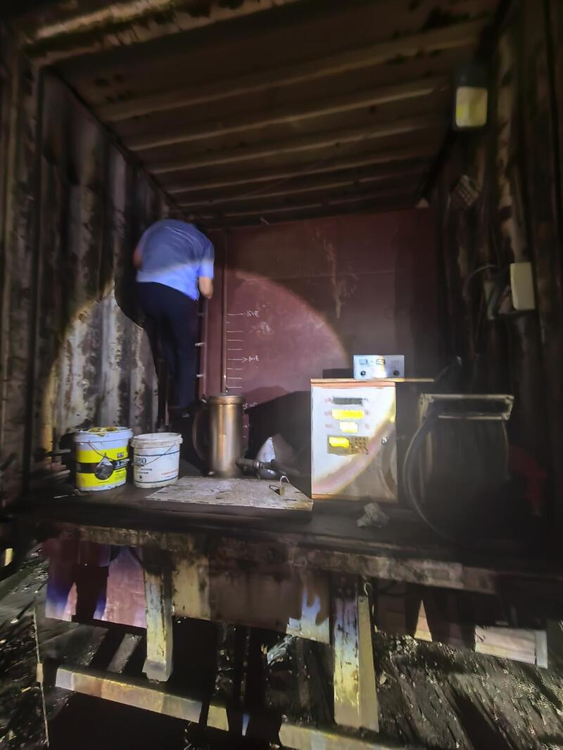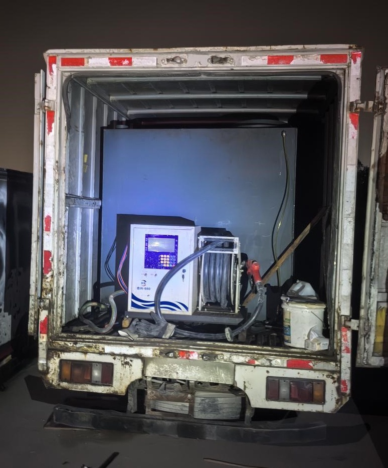 当日,望亭镇综合行政执法局联合应急管理、市场监管等部门组成的专项排查小组,在对福杭路周边物流园区、闲置场地等“自流黑”高发区域进行地毯式摸排时,敏锐发现一处隐蔽场地内停放着一辆形迹可疑的车辆。执法人员立即上前核查,发现该车辆为经过非法改装的流动加油车,车内不仅存放着大量油品,还违规配备了加油枪、计量器等加油器具,旁边一个无轮子的集装箱同样经过改装,内部俨然是一个小型“黑加油点”,各类加油台账、账单据散落其间,记录着非法经营的痕迹。执法人员当场固定证据,对现场油品进行抽样检测。经初步调查,该窝点未取得任何相关经营许可,涉嫌非法储存、销售成品油。非法改装的加油设备缺乏安全防护措施,油品质量也无法得到保障,不仅严重扰乱了成品油市场经营秩序,其储存和加油过程中还存在极大的消防安全隐患,一旦发生泄漏、爆炸等事故,将对周边群众生命财产安全造成巨大威胁。