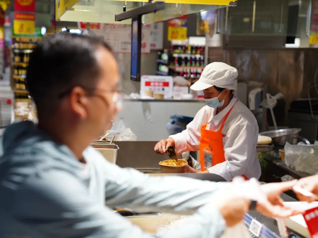 在民生食品品类,门店坚持“现制现售”:手工现炸油条单日销量达1400根,3.9元的巨无霸大肉包日售700个,全品类包子单日总销量超1000个,每一份产品都承载着新鲜口感与“家常味”;面对中老年消费群体,门店拒绝“标准化包装”的一刀切,保留散称蔬果销售模式,肉品区更提供“按需分割”服务——即便消费者仅需二两肉,工作人员也能精准处理,充分适配传统消费习惯。