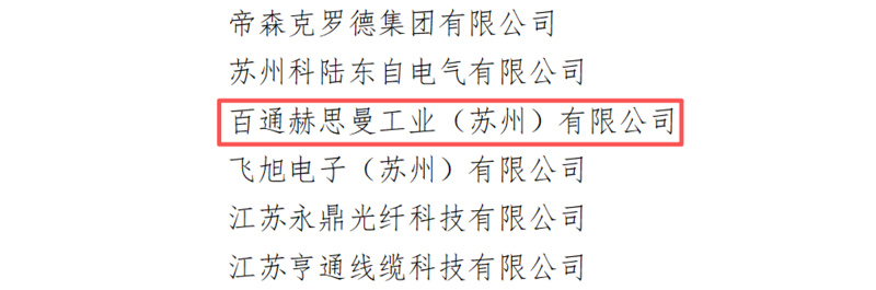 中国江苏网讯 苏州市工信局公布2025年苏州市零碳(近零碳)工厂建设工作成效突出企业名单,百通赫思曼工业(苏州)有限公司荣获“苏州市近零碳工厂建设工作成效突出企业”是花桥首家获此殊荣的企业,实现了在该项目上零的突破。